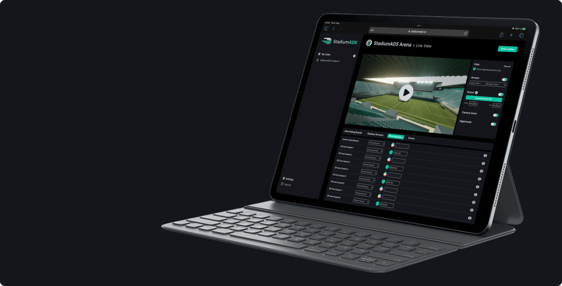 With StadiumADS you have full control over your stadium marketing. Present the extensive advertising possibilities in your sports arena: center circle banner, 3D cam carpets, LED board, stadium screen and much more.